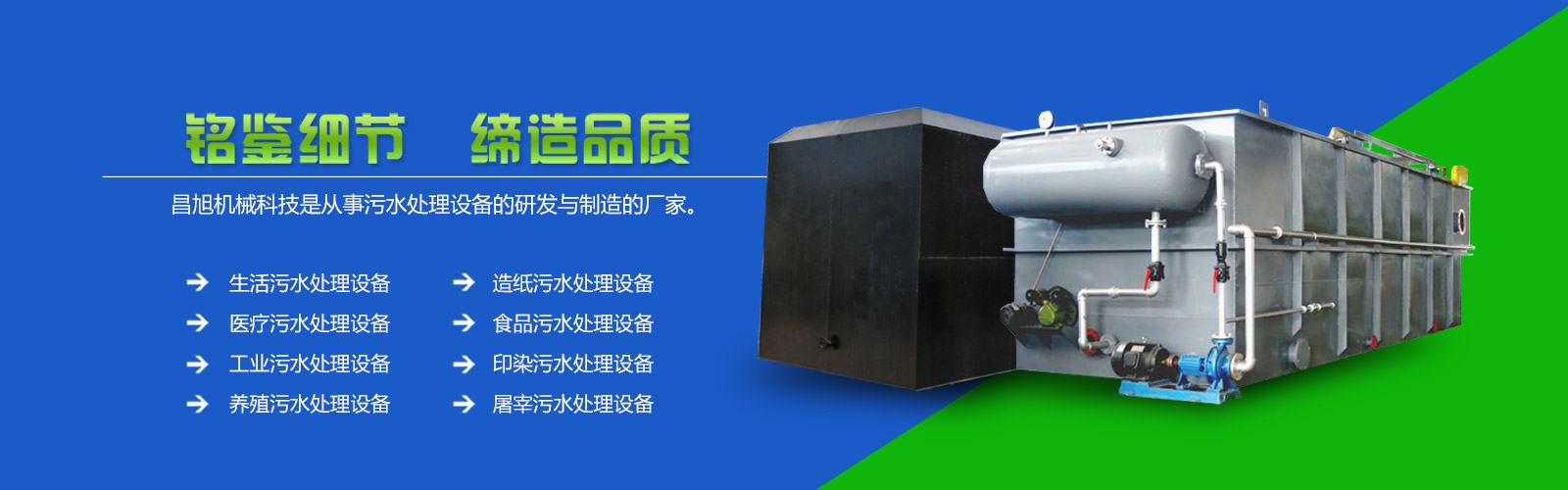 诸城市昌旭机械科技有限公司是专业从事污水处理设备的研发与制造的厂家。公司坐落于世界著名的“中国恐龙之乡”——诸城市。公司通过引进国内外尖端水处理技术,并与多所高校、设计院联合组建了一支技术力量雄厚的专业化团队,具有较强的设计、制造、服务能力。